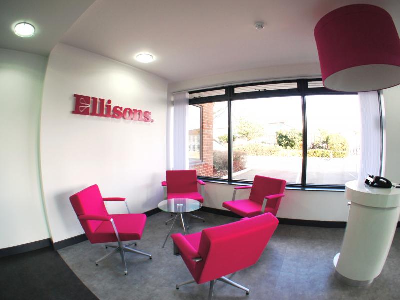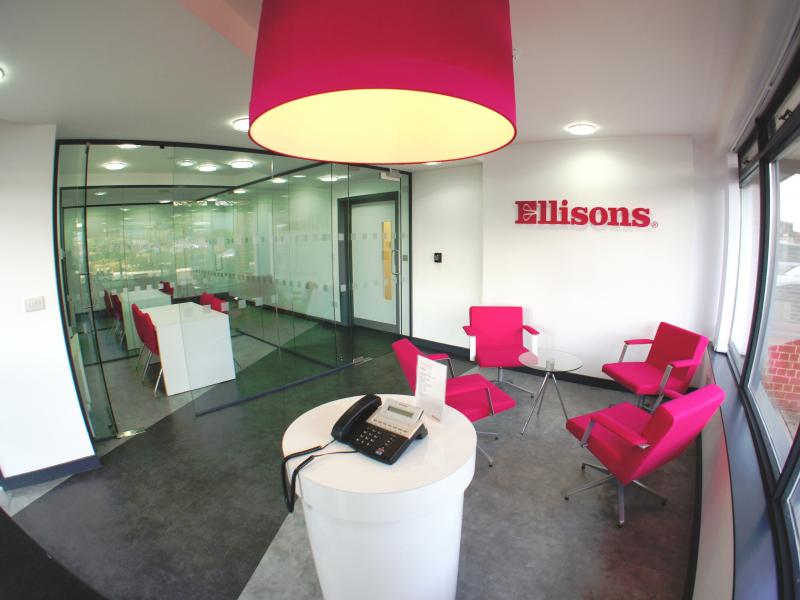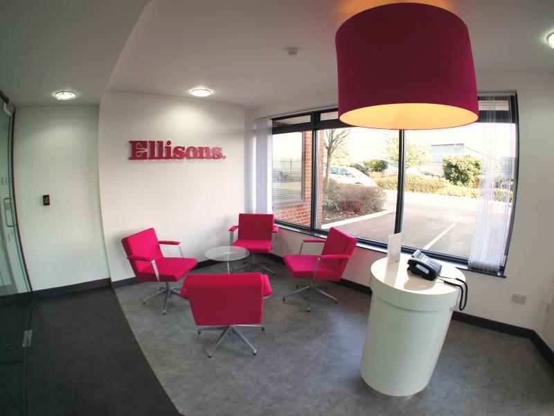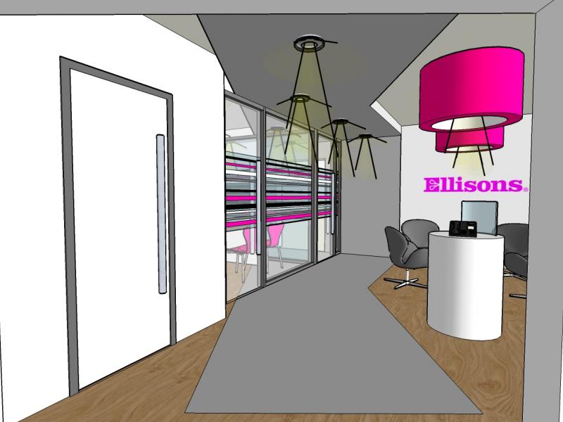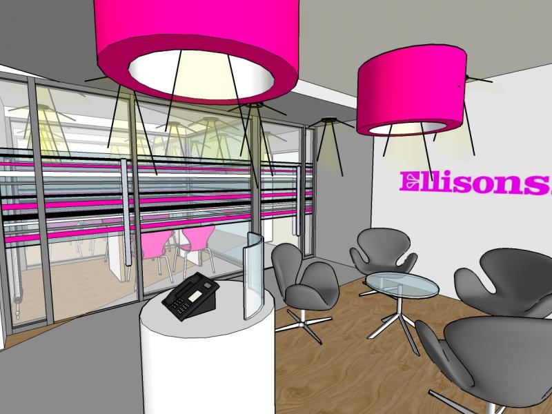 partitions. The head office reception area is the first completed design project direct for Ellisons and represents the direction of the interior design in a view towards a full re-location project in the future.