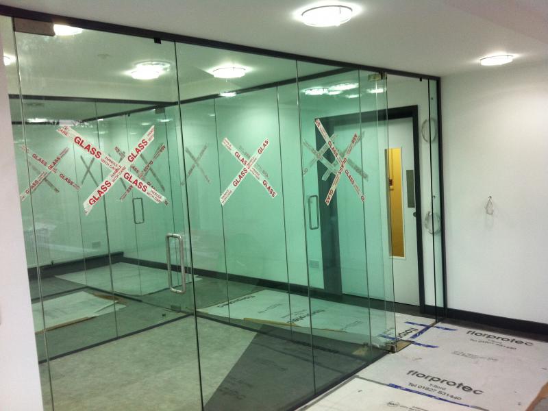 Following the initial rip-out, work quickly began on building the interior with a new electrical supply, stud- partitions and ceilings being installed. The project brief required 2 meeting offices which could double as hot desk spaces; with one being accessible from the reception area and the other only available internally from the staff workplace. A corridor created by the glass offices simply link two parts of the building and maintains security throughout.