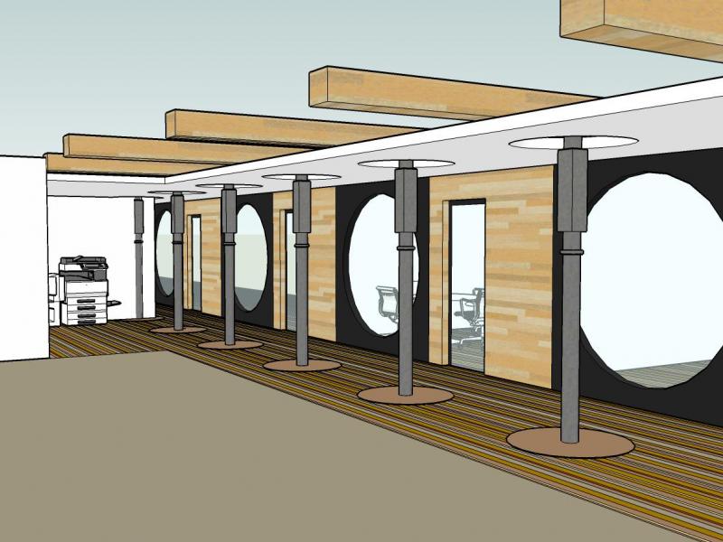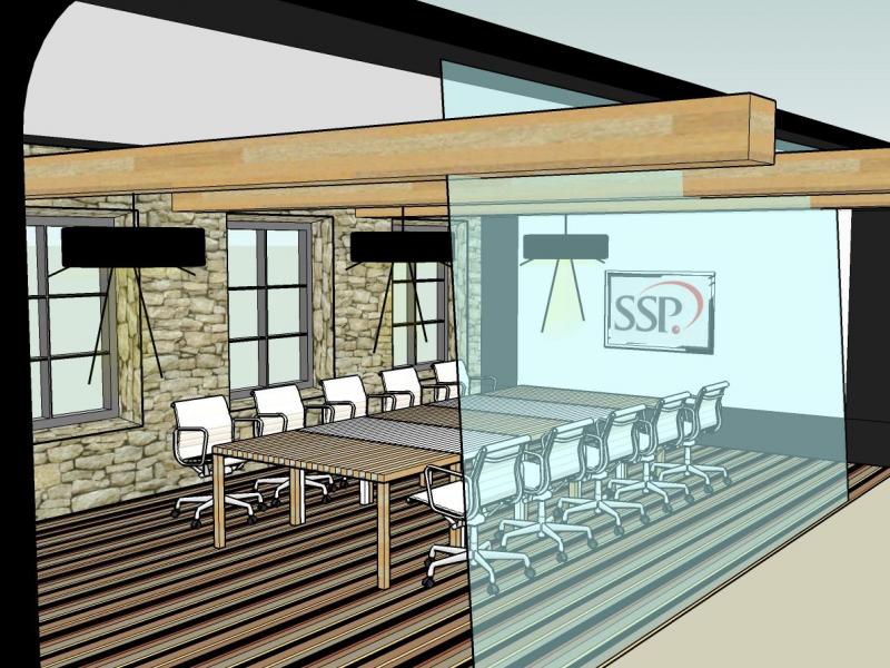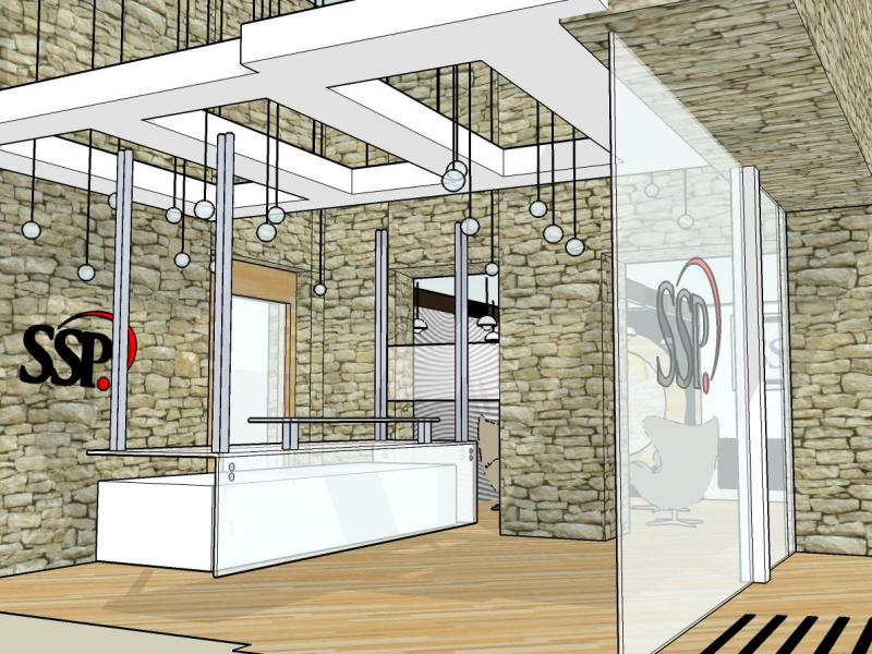 By taking colour from the SSP logo as a starting point and retaining the existing stonework wherever possible, a challenging design was brought to the table. The scheme, in short had a glass reception counter suspended from the structural ceiling with glass globe lamps at varying heights. The reception area also featured an interactive glass panel with ‘welcoming messages and SSP logo’ for visitors to the building.