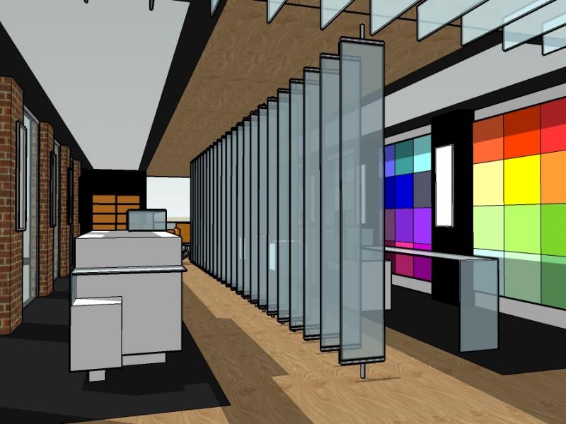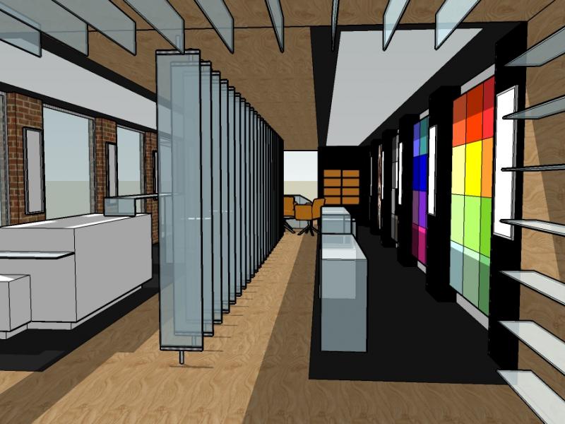 The biggest challenge for Fahrenheit was to design a concept showcasing the glass; traditionally used as part of the shop-fitting materials, as the retail product in a consumer environment. The store design featured heavily on decorative, painted, security, Georgian wired, mirror, and curved glass for applications in the home or commercial interiors. Architectural, toughened, laminated, pyro-glass (fire rated) and specialist glasses were grouped for customers who required an advanced service or innovative materials within an independent meeting room specifically for trade and professional use.