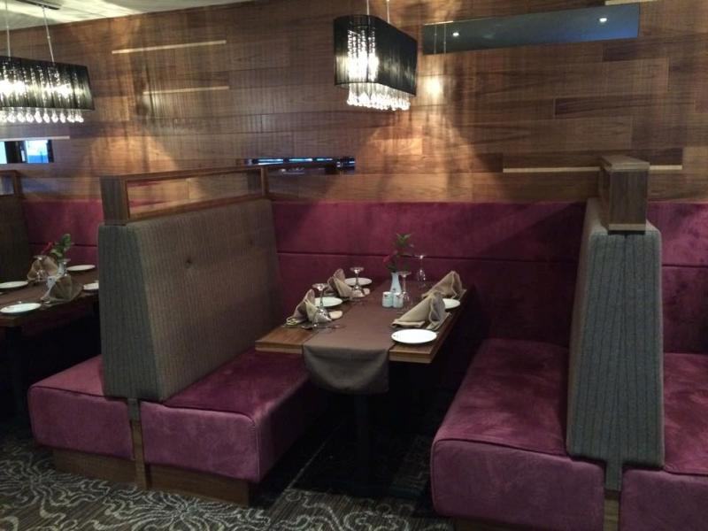 Following on from the much admired Mahfil in King's Norton, the Ahmed family required a complete refurbishment of their restaurant in the Worcestershire town of Alvechurch. Knowing the expectations of the Client and their customers led Fahrenheit to design a warm, cosy and welcoming interior using quality upholstery's, carpets and feature wall paneling. Much thought was required to ensure that table covers (numbers) were increased and flexibility of furniture layout was retained as much as possible. Parties of up to 20 people needed to be comfortably accommodated in the main dining area at the same time as couples requiring a little more privacy whilst not feeling overcrowded or overlooked.